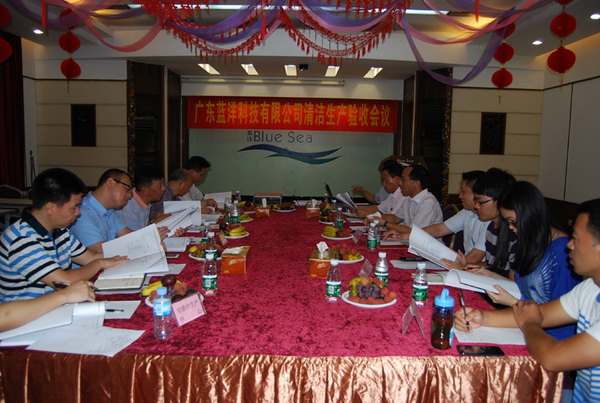 會中,廣東藍洋科技有限公司安環(huán)經(jīng)理劉強向主管部門領(lǐng)導(dǎo)和專家作了企業(yè)介紹及清潔生產(chǎn)實施情況。與會主管部門領(lǐng)導(dǎo)和專家聽取了關(guān)于清潔生產(chǎn)審核的情況匯報,審閱了相關(guān)資料,查看了企業(yè)生產(chǎn)現(xiàn)場。